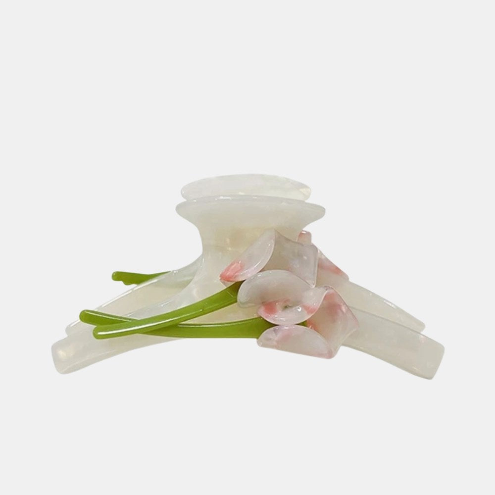 Graceful and feminine, Jacin White is adorned with delicate flower details, crafted in a glossy pearl finish for effortless elegance.